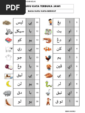 Milarian Nota Jawi Suku Kata Terbuka Tahun 1. Latih tubi eja dan baca bersama ibu ayah atau adik-beradik3. Check Pages 1-10 of SUKU KATA TERBUKA JAWI in the flip PDF version.